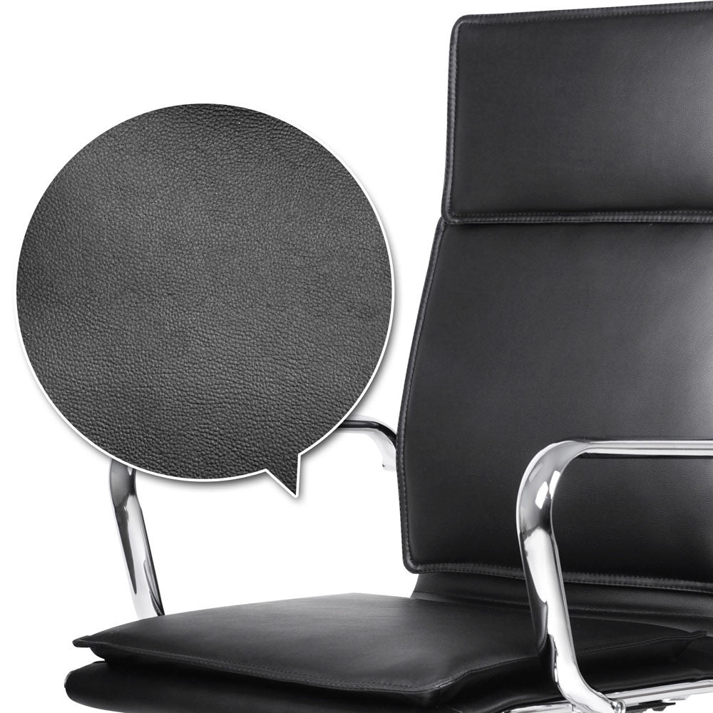Get comfortable and productive at your work place, look no more. This Executive High Back Office Chair combines high quality chrome body and PU leather material to look stylish and contemporary. What's more, this chair added extra comfort for you by having thick padded seat and headrest to work through the day. There's an extra function in it - hang your scarves, ties or handbag hook on the bar at the back of your chair to keep your work area looking tidy always!