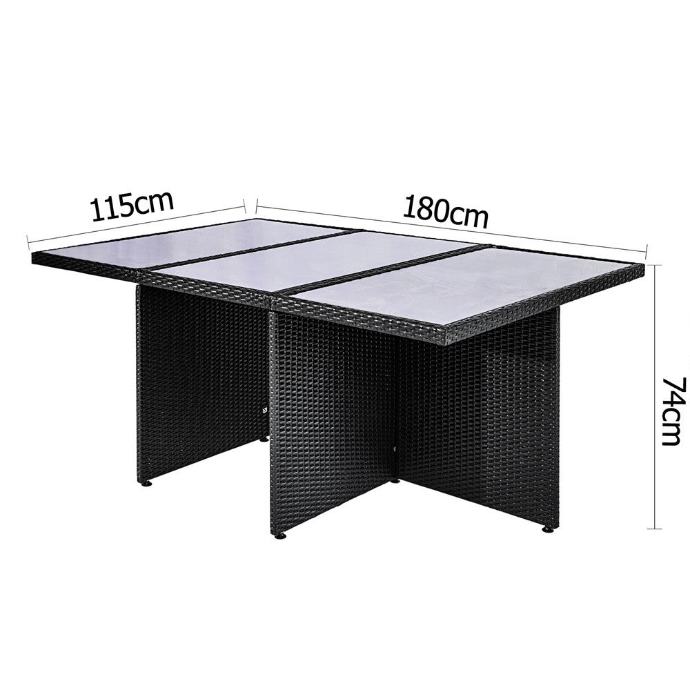 11 pcs Black Wicker Rattan 10 Seater Outdoor Dining Set Grey