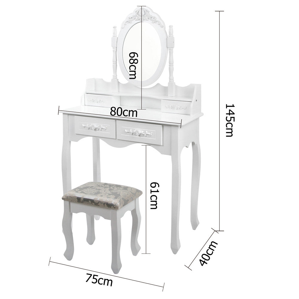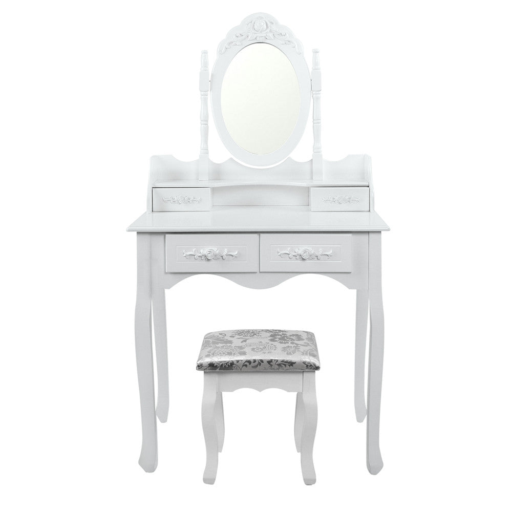 Luxury Dressing Table & Stool Mirror Jewellery Cabinet 4 Drawers Organizer