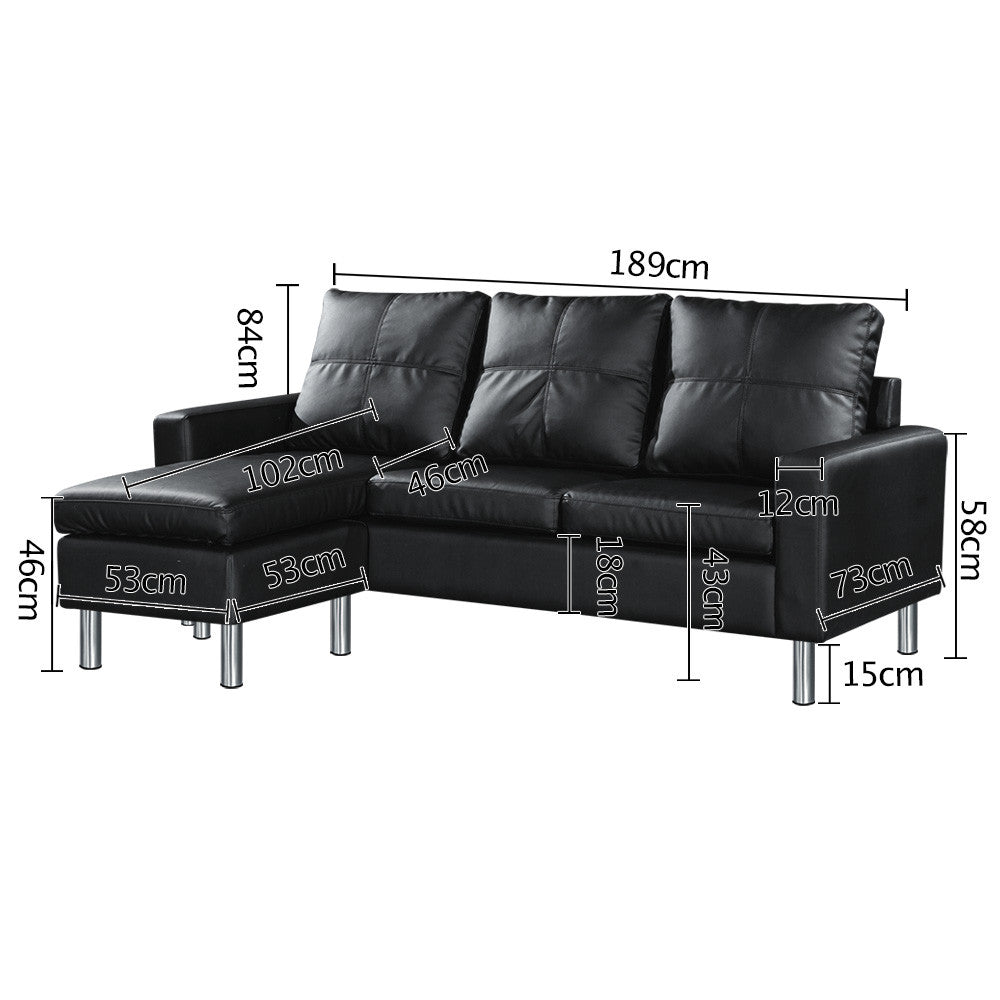 4 Seater PU Leather Sofa Modular Lounge Suite Black