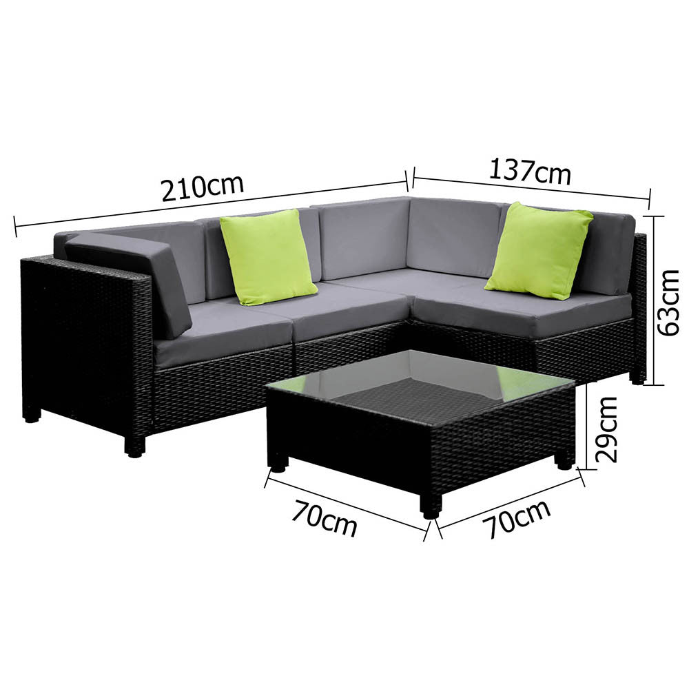 5 pcs Black Wicker Rattan 4 Seater Outdoor Lounge Set Grey