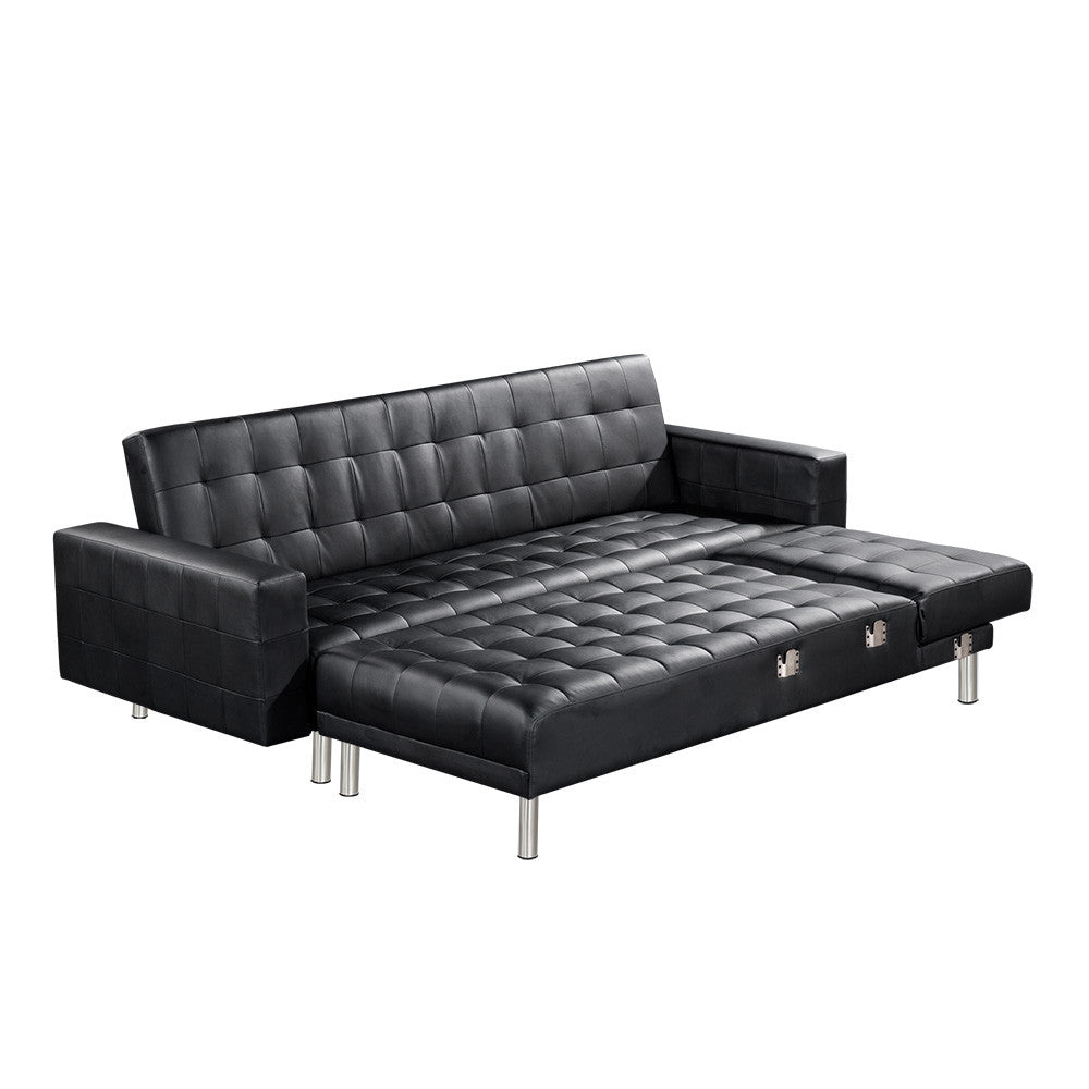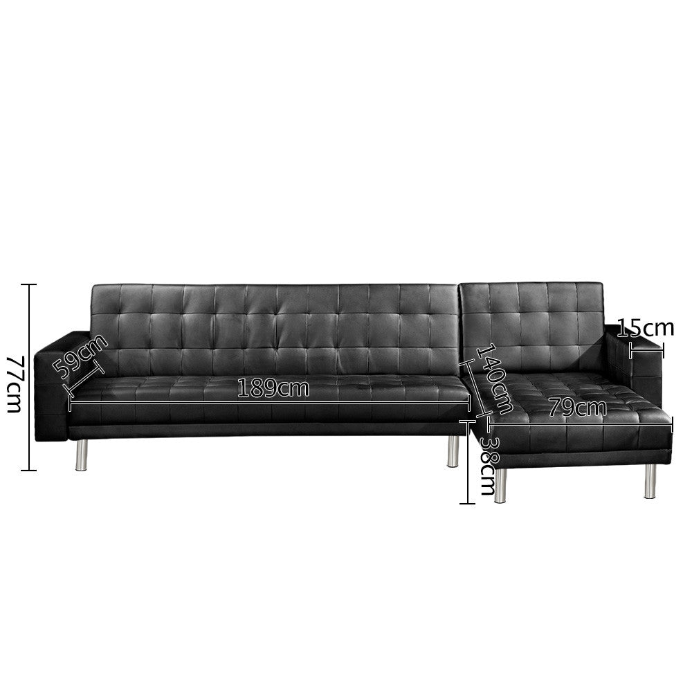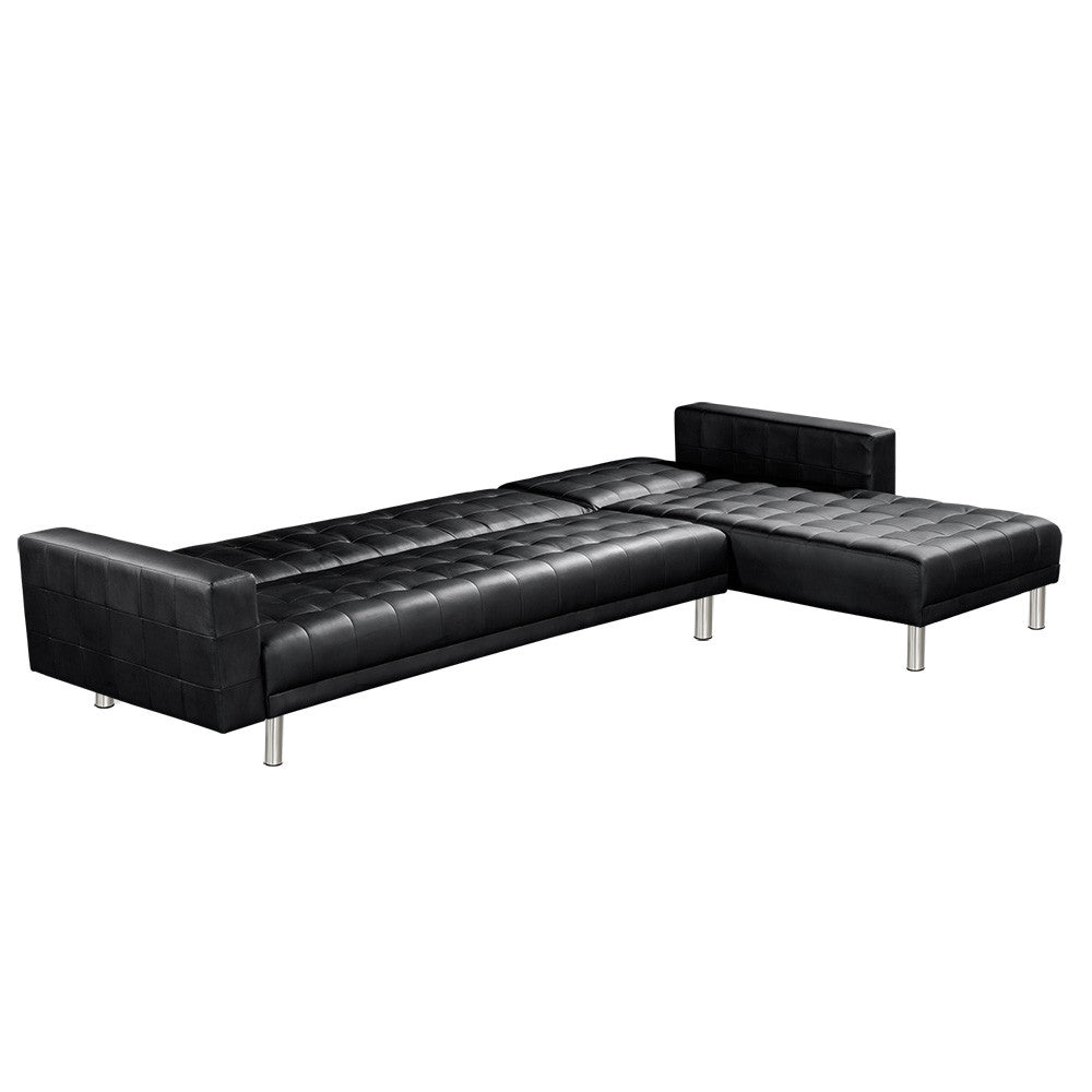 5 Seater PU Leather Sofa Bed Couch Lounges Futon Suite Chaise Set Black