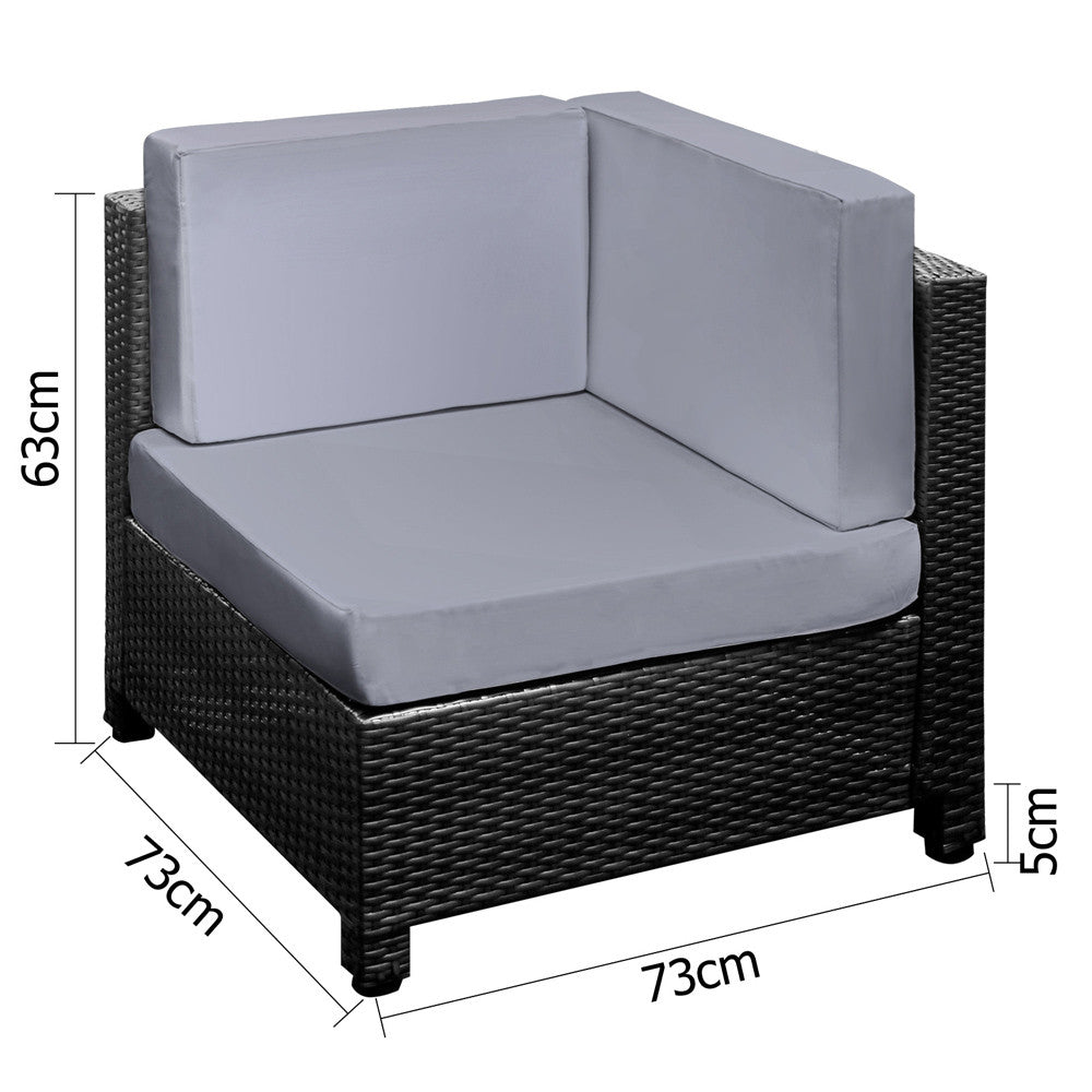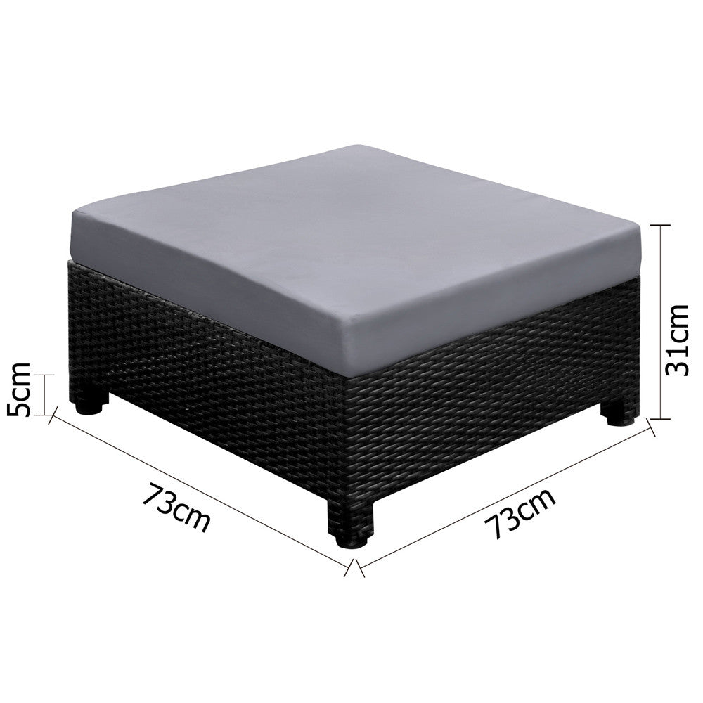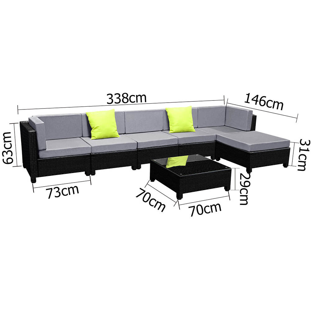 7 pcs Black Wicker Rattan 6 Seater Outdoor Lounge Set Grey