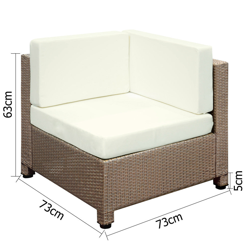 7 pcs Brown Wicker Rattan 6 Seater Outdoor Lounge Set Beige