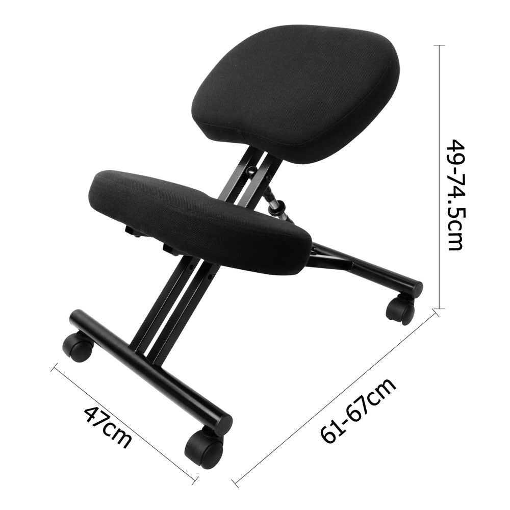 Perfect for the home or the office, this kneeling chair is designed for your comfort and to improve your seating positioning. It features a strong metal contruction with well padded acrylic fabric covered cushions that will offer you absolute satisfaction. The manual height adjustment function allows you to freely adjust the chair to the optimal height so you can always sit in the position that is more comfortable for you.