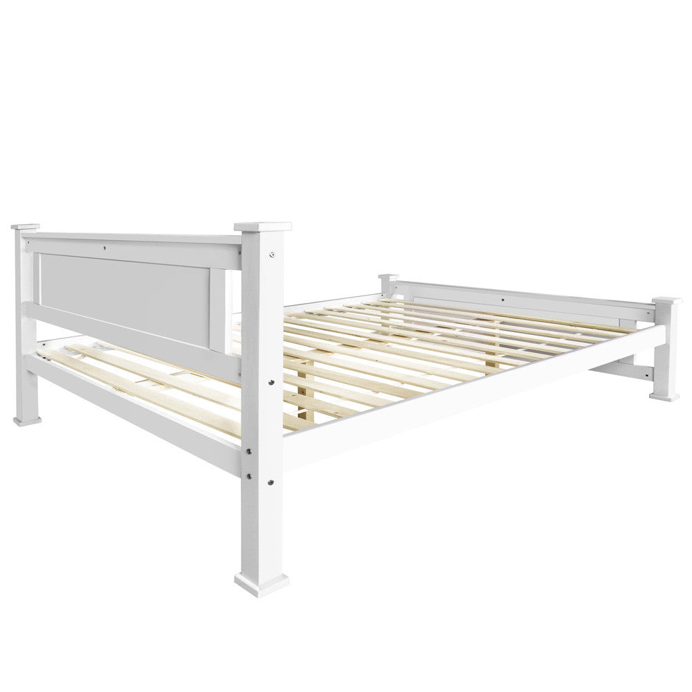 Wooden Bed Frame Pine Wood Double White