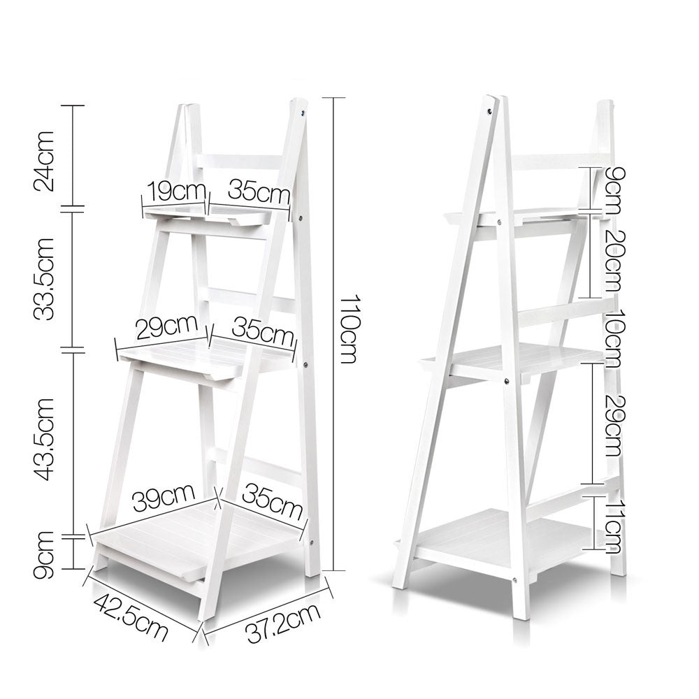 Wooden Ladder Display Storage Shelf White