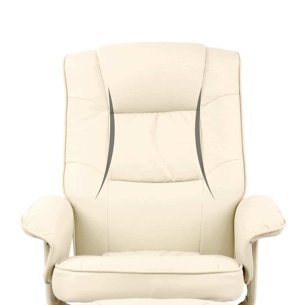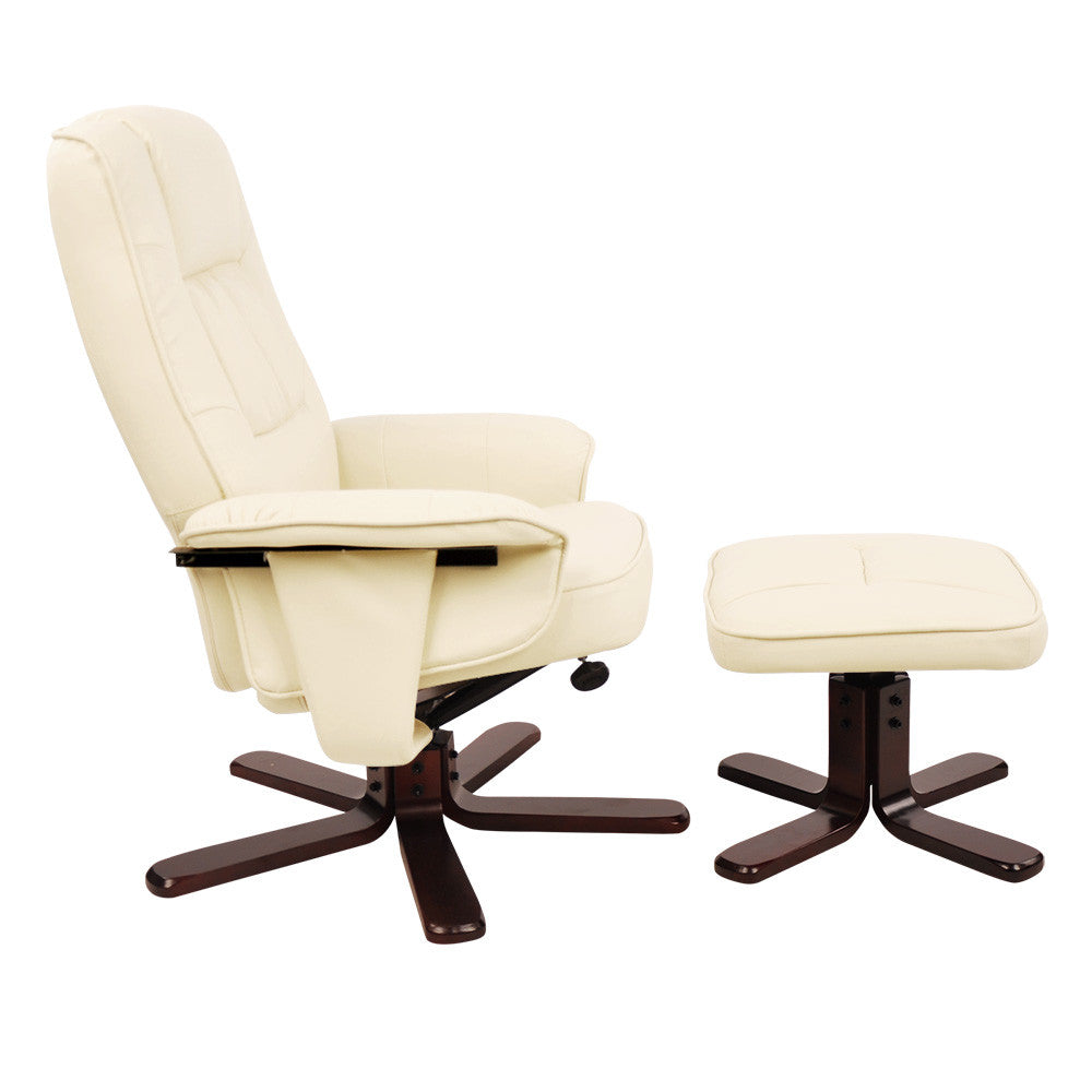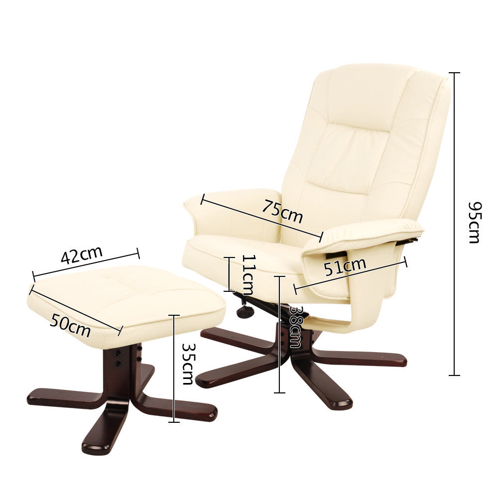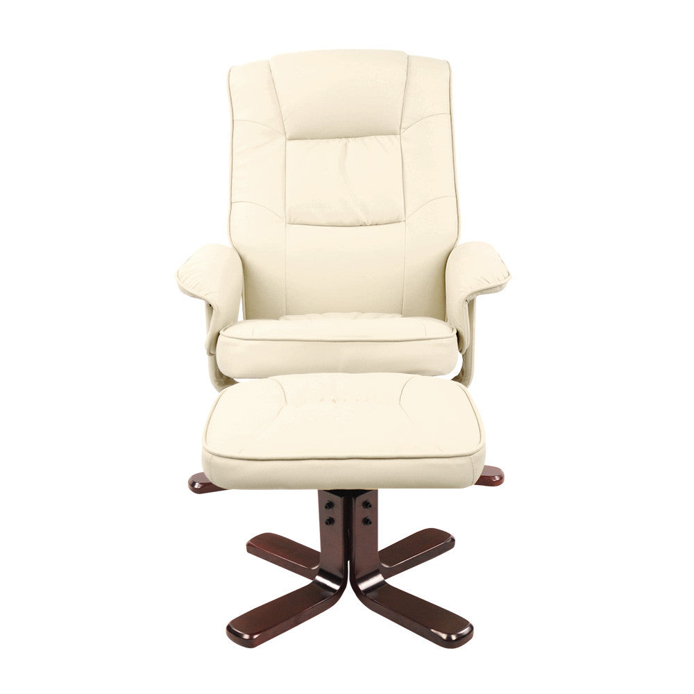 PU Leather Lounge Recliner Chair Ottoman Beige