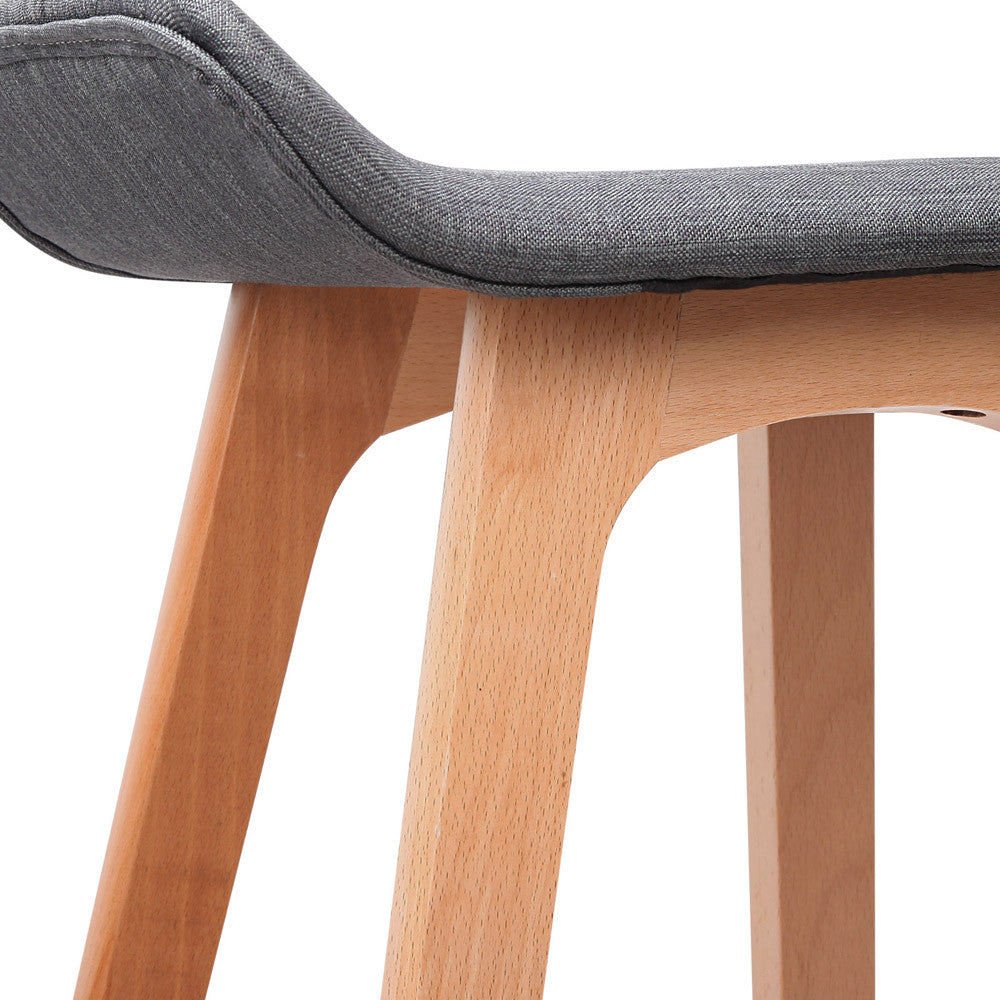 Designed with elegant fabric seating and the neutral tone of Beech wood legs these bar stools will give your home a more refreshing look. The contoured seatback provides support while the cross-piece base allows you to rest your feet for more comfortable sitting, whenever you are at your kitchen breakfast bench or home bar area. Contemporary and innovative, it's a beauty with assured quality.